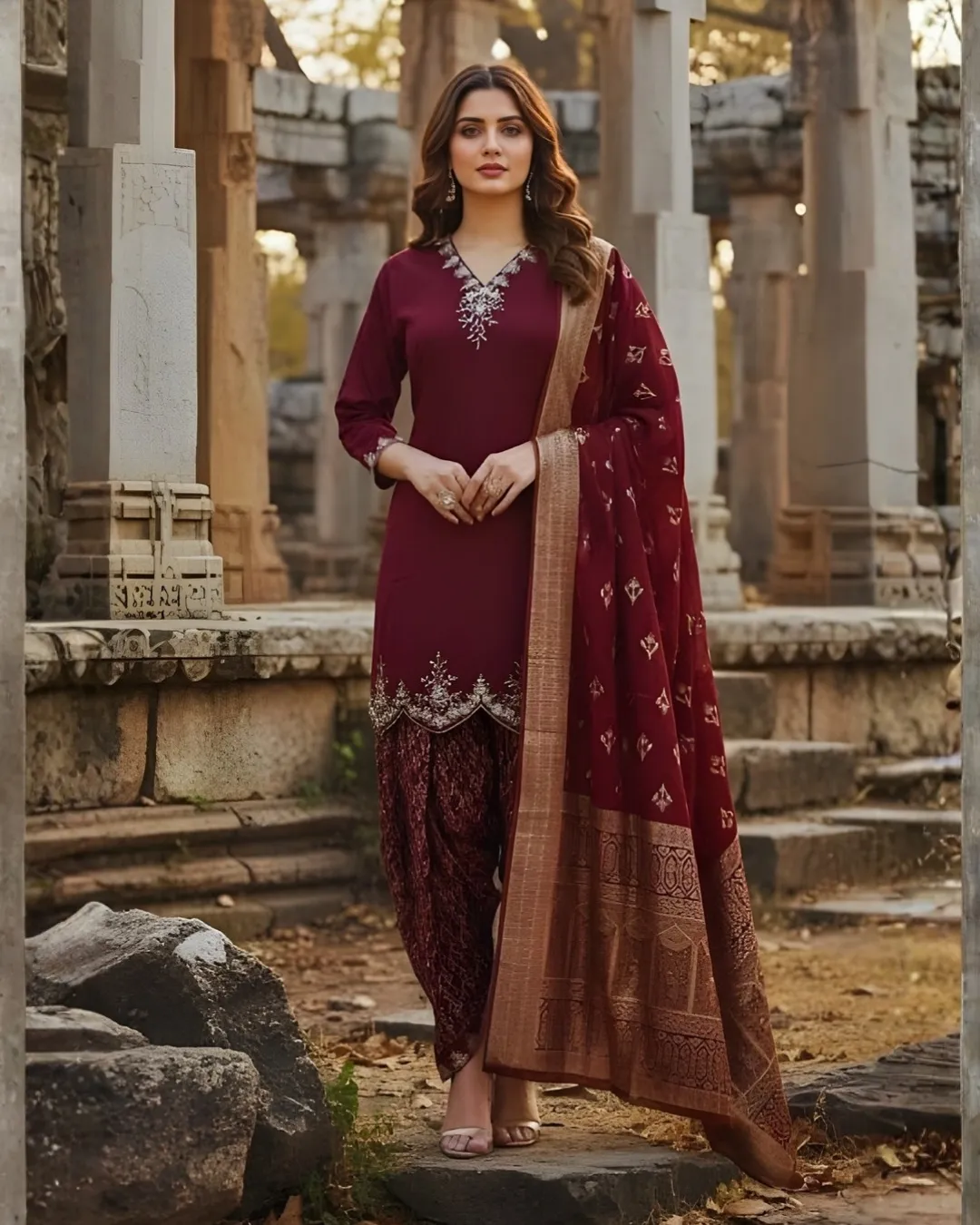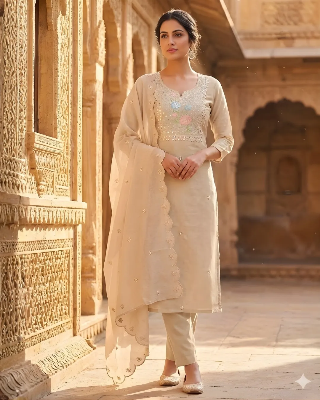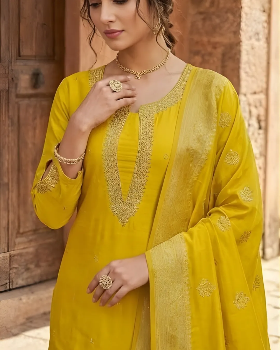 A timeless black kurta set designed for effortless elegance. Featuring delicate embroidery along the neckline and hem, paired with a beautifully textured dupatta that adds a subtle statement. Crafted for comfort and style, this outfit is perfect for festive evenings, family gatherings, or elegant everyday wear. Simple, graceful, and incredibly versatile.