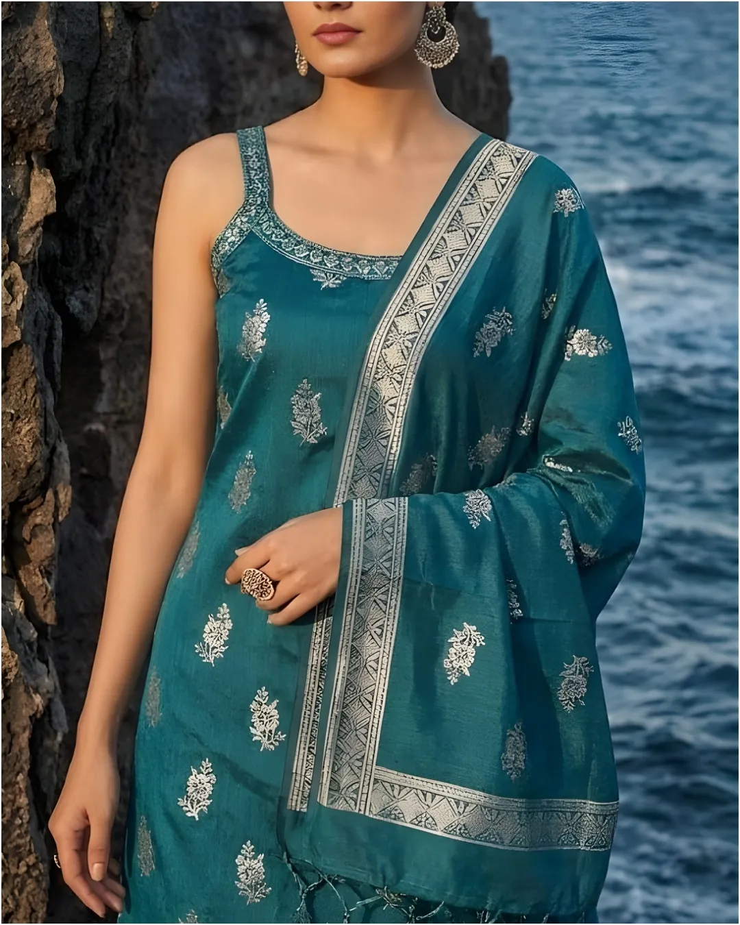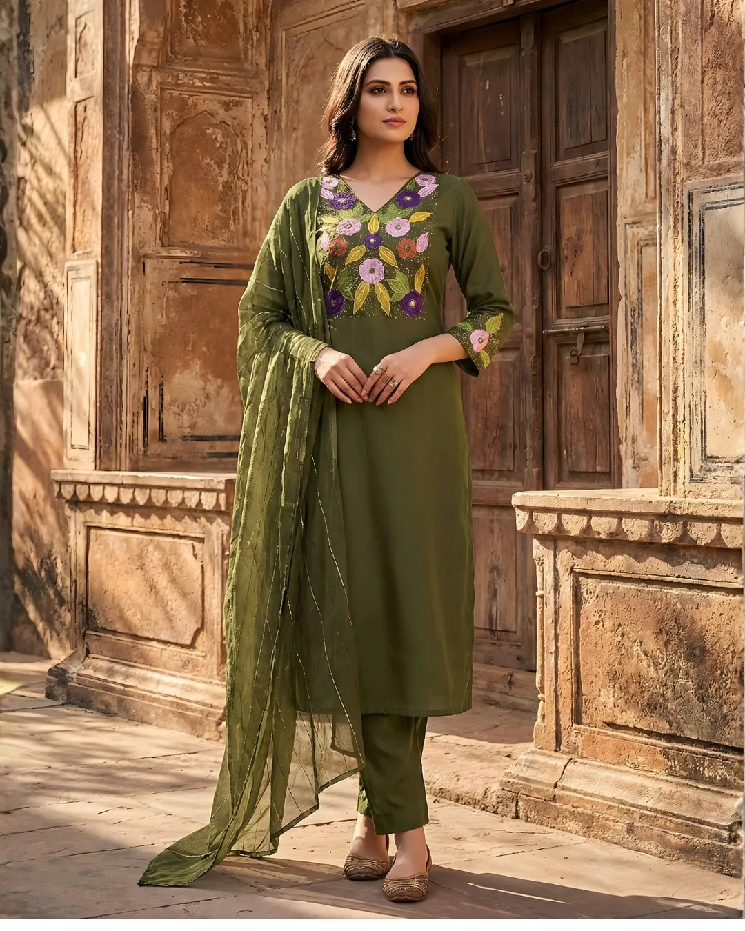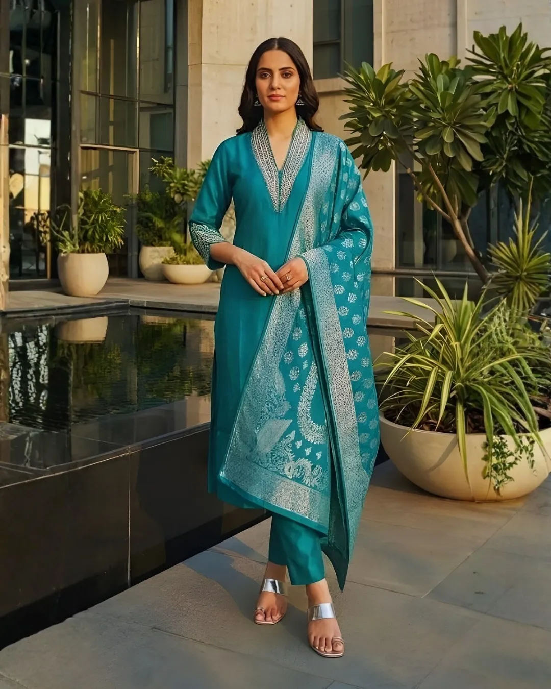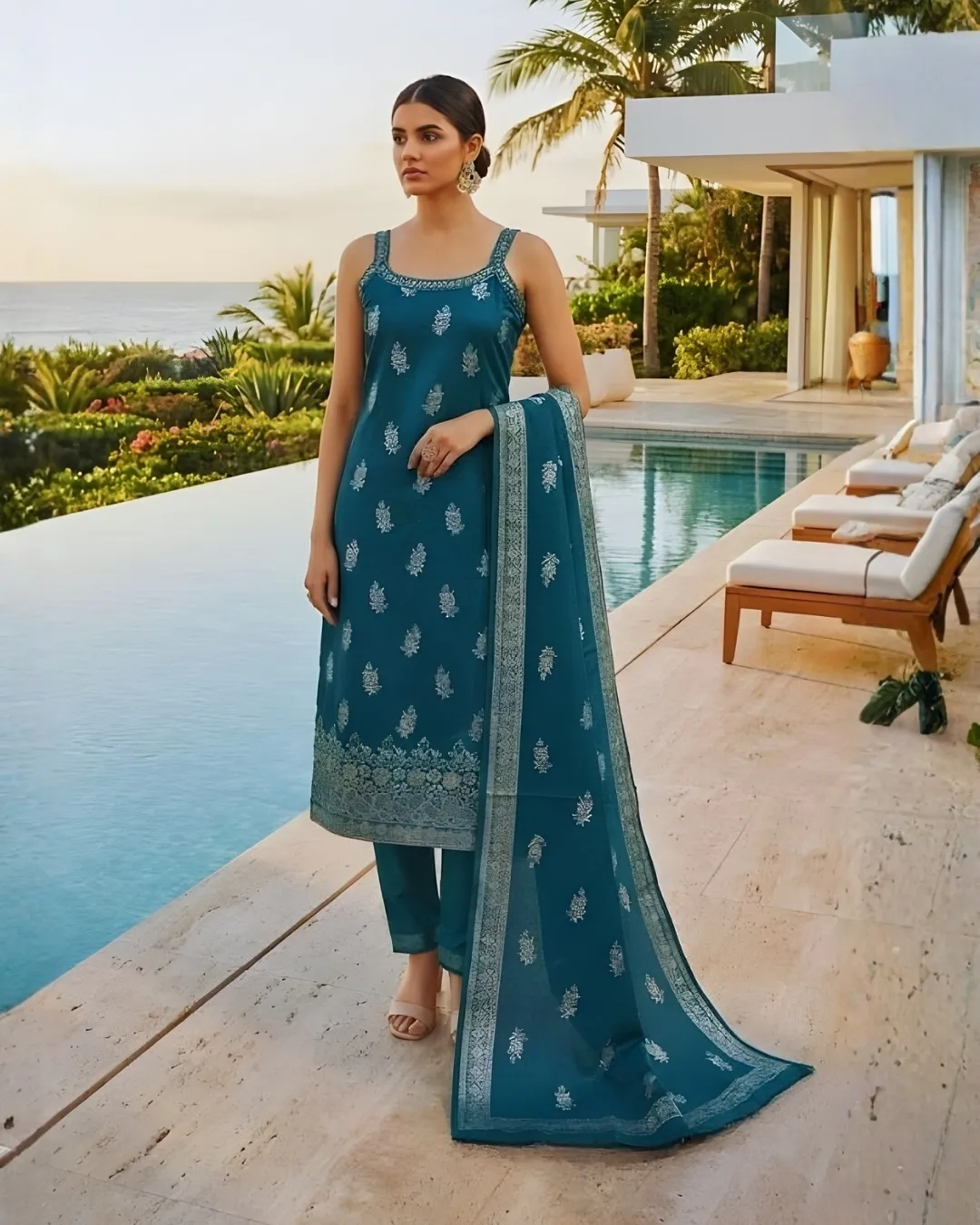 A timeless black kurta set designed for effortless elegance. Featuring delicate embroidery along the neckline and hem, paired with a beautifully textured dupatta that adds a subtle statement. Crafted for comfort and style, this outfit is perfect for festive evenings, family gatherings, or elegant everyday wear. Simple, graceful, and incredibly versatile.